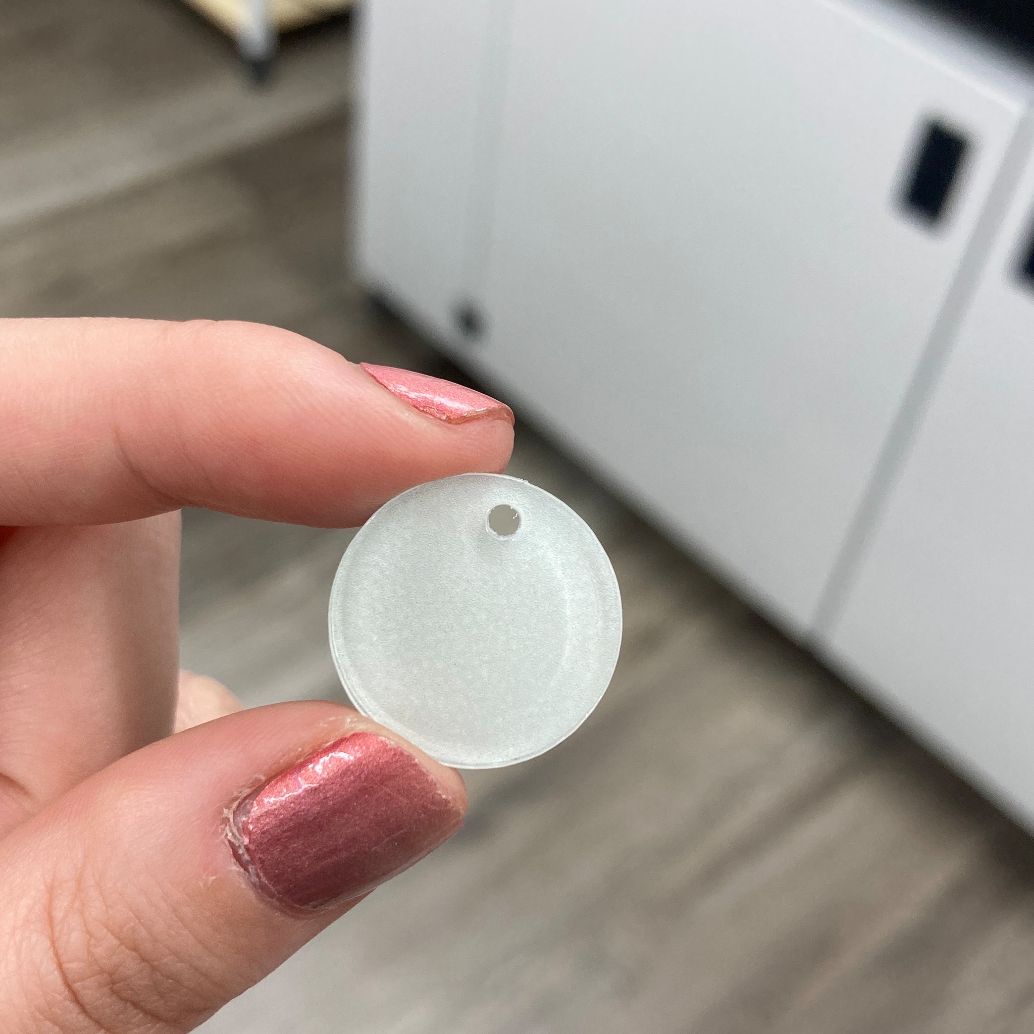 丸くmicroplanetsの形に切り抜いたアクリル板に、印刷をする工程です。
