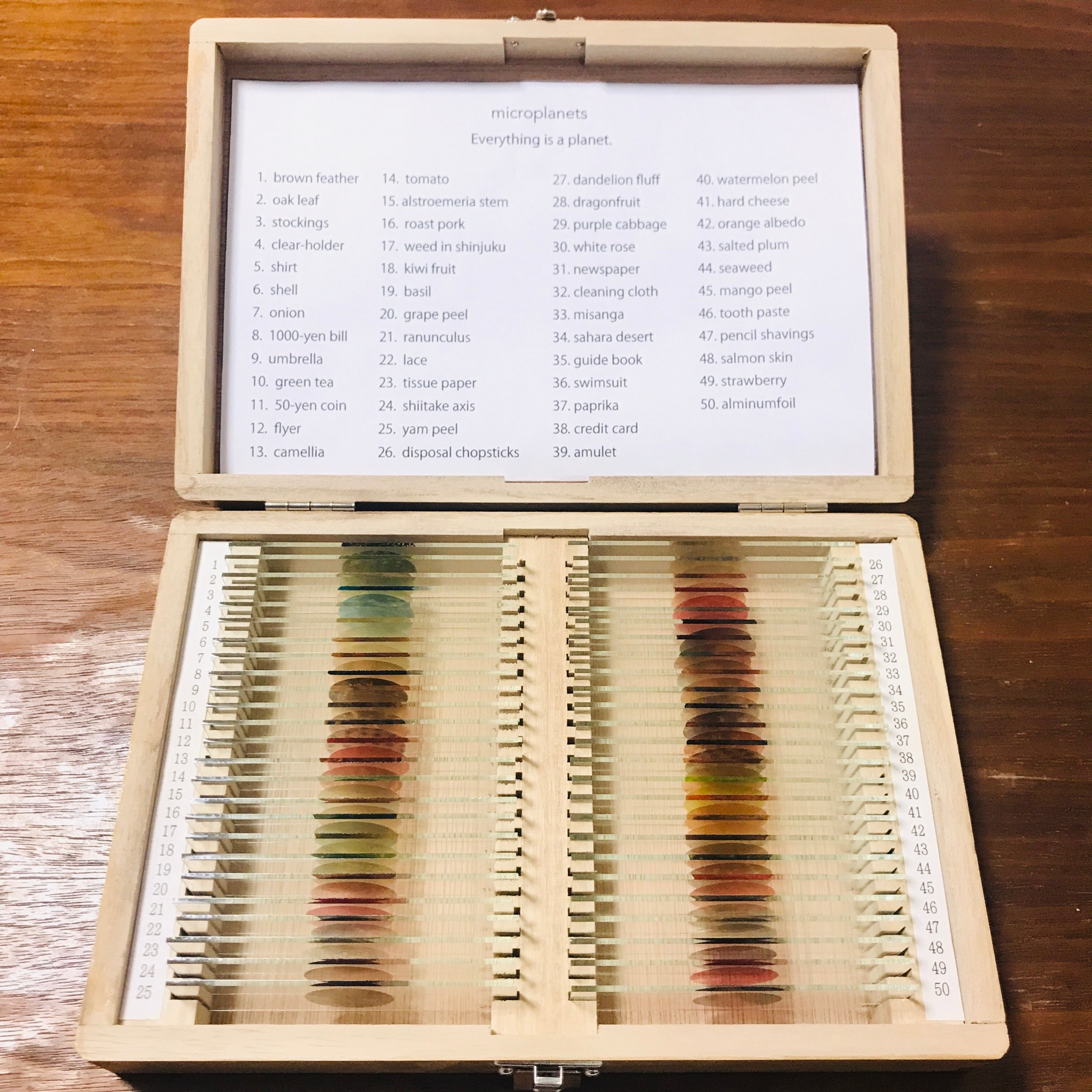 50種類の様々なmicroplanetsが標本箱に入っていますので、実際に手に取っていただき、付属の紙にのせてじっくり観察することができます。