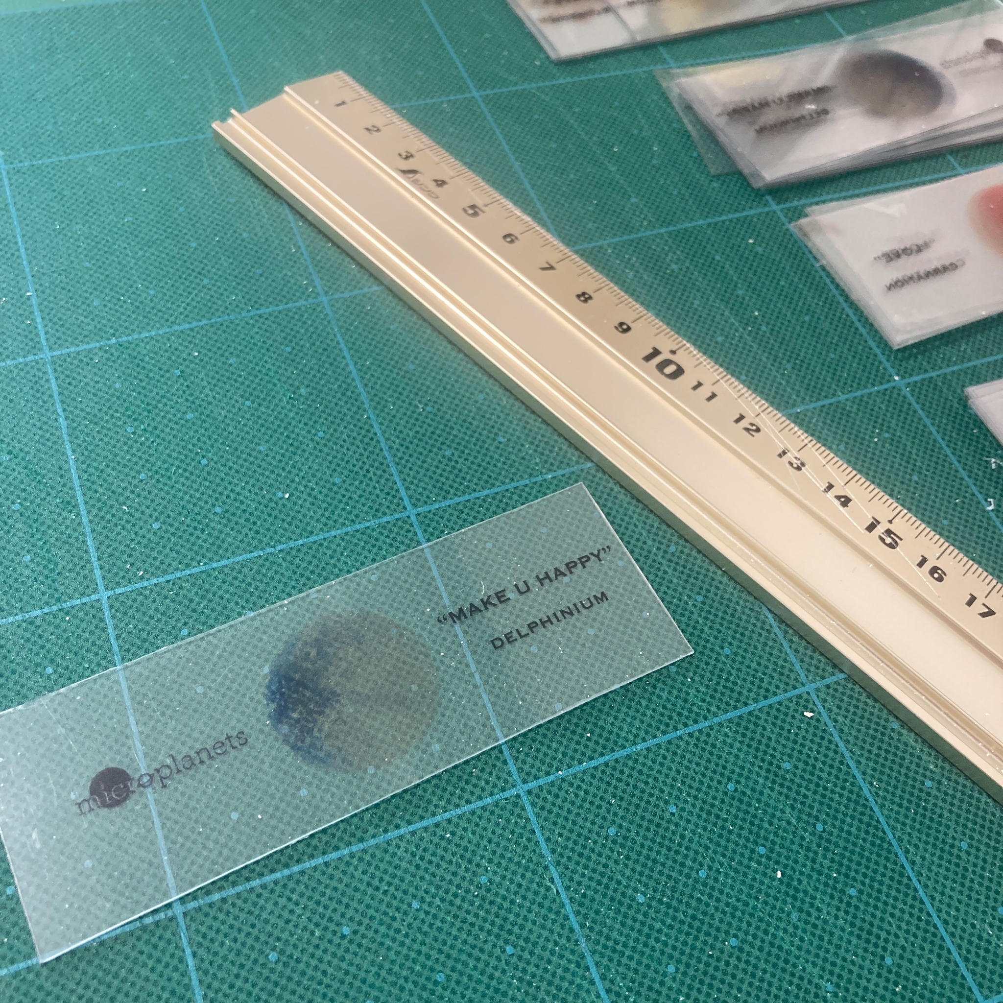この後、角を丸く処理し、リボンを通す穴を開け(これが重労働…)