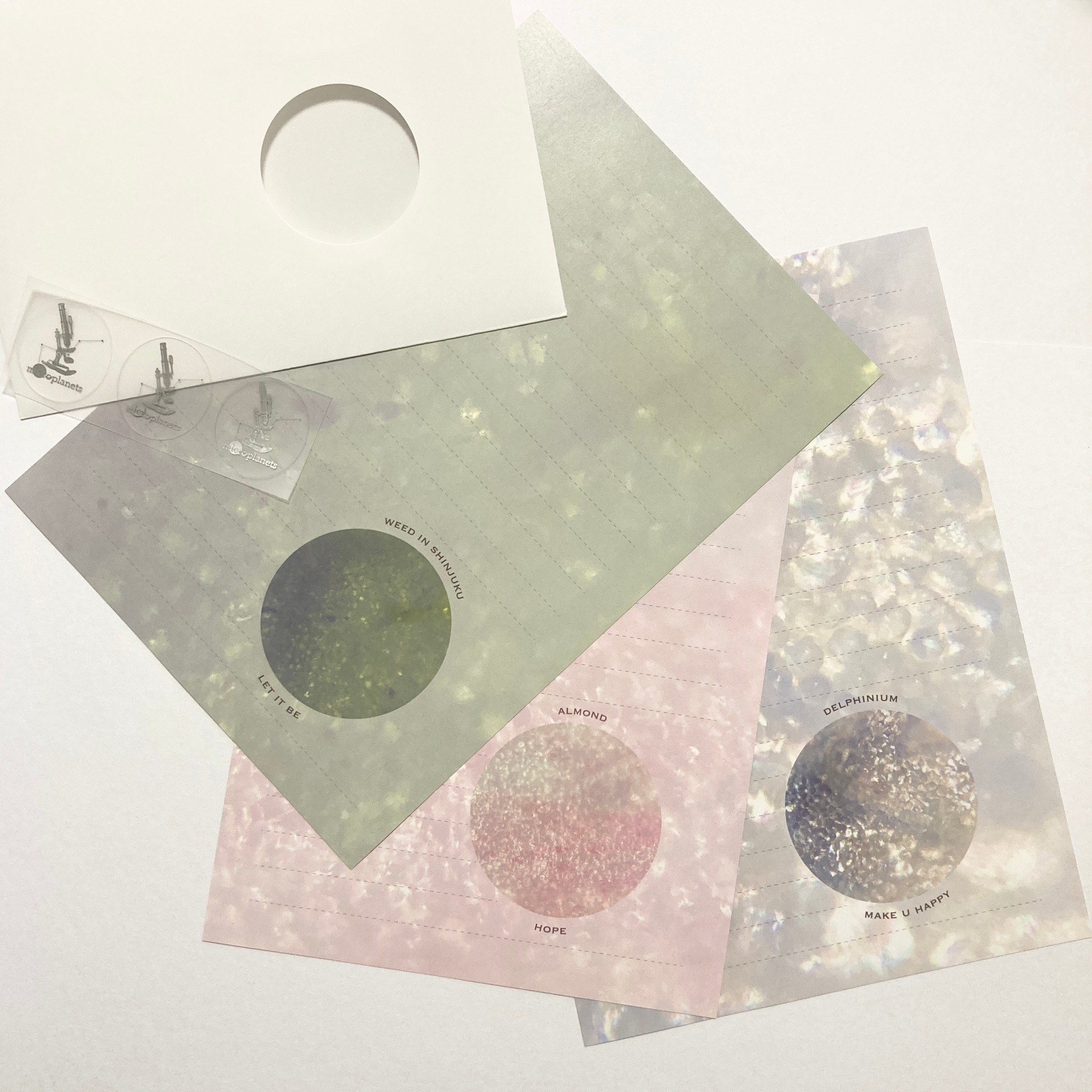 封筒をmicroplanets柄にして、便箋はシンプルなロゴ入りに。