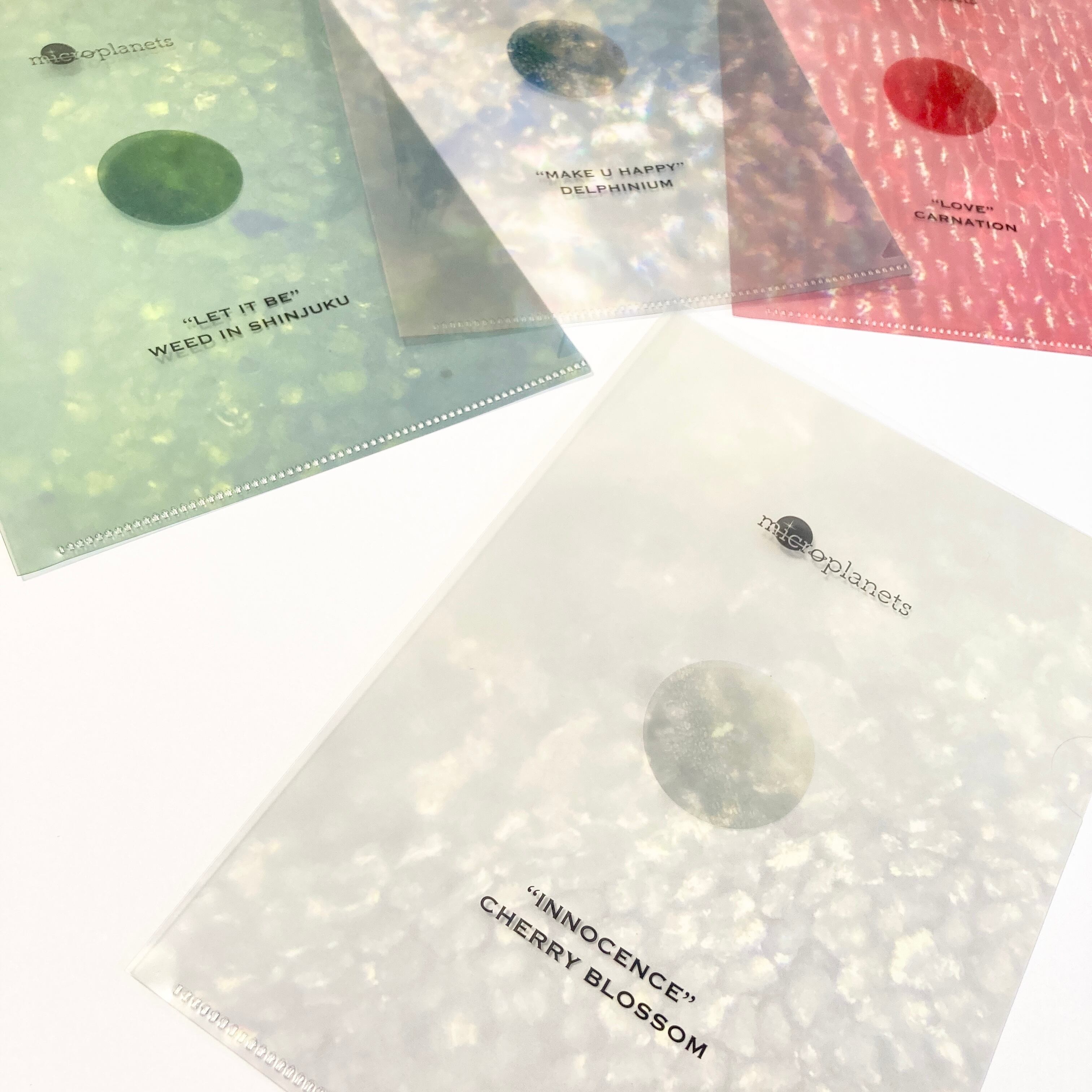 植物から採集したmicroplanetsの綺麗な柄をデザインした、小さなクリアファイルです。