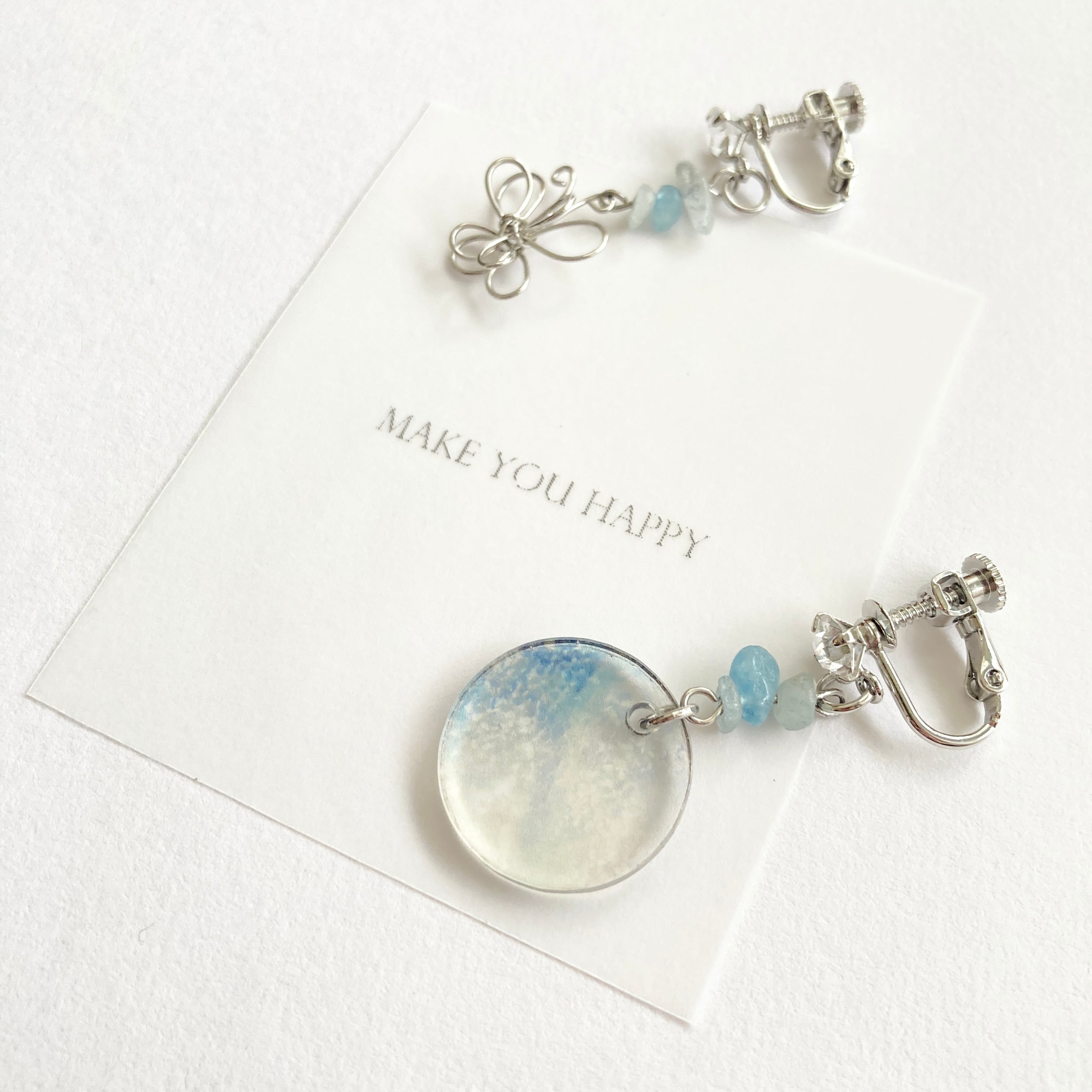 デルフィニウムのmicroplanetsパーツをメインとするイヤリング/ピアスは、